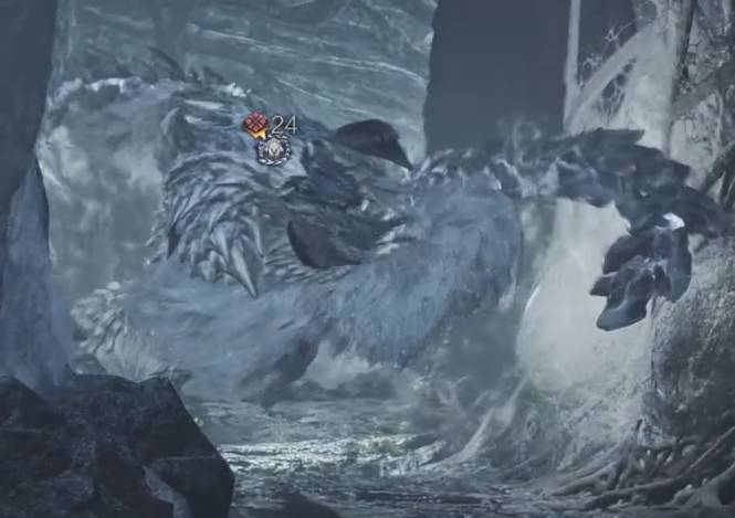 3.当看到锁刃龙蜷成一团的时候立刻停止攻击,他会把链子甩向我们,不过这个招式挺常见的,多看到几次(其实是挨打)就知道了。