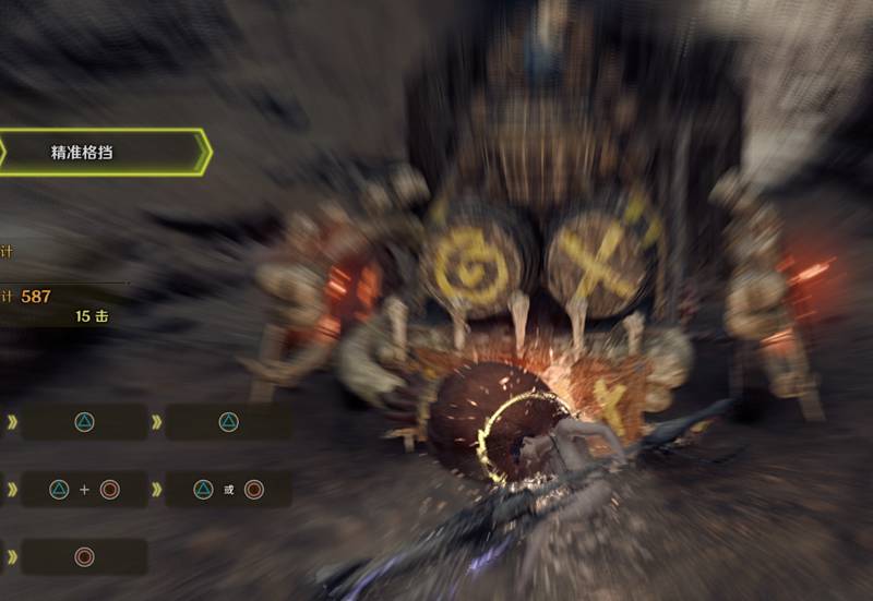 在怪物攻击瞬间按下格挡会触发精准格挡,判定比较宽松,只要看见怪物抬手了以后慢一点按也可以触发,触发后和GP一样,可以派生其他攻击,例如敲打。特定怪物精防后还会触发“角力”,角力后连按攻即可角力成功,之后怪物会有一段大硬直,此时可以进行追击。熟练使用精防可以让你如鱼得水。