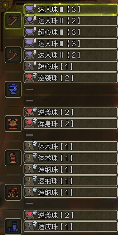 目前主流的太刀配装是出狂龙病的,而狂龙病需要克服,带来一条不稳定性,同时无论是黑丝4还是黑丝2都需要抖擞补会心,精神抖擞又是另一条不稳定性。在设计好的流程中这些不稳定都可以被降到最低,但是日常狩猎讲究一个随心,懒得思考,于是我就搞出了一套无脑100℅覆盖率的百会套装[狗头]。