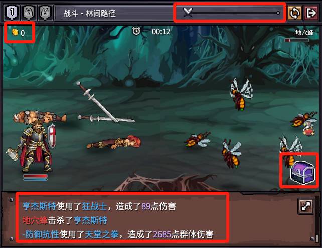 左上角会实时显示本关卡掉落的金币数量,右下的紫色宝箱是每个关卡都有的条件宝箱,在限定时间内通关即可开启。