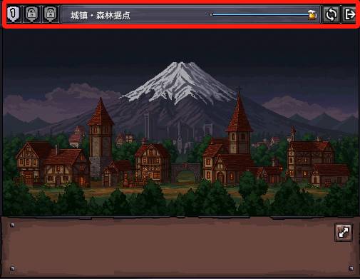 最右侧有两个按键,左边的两个箭头互相循环的标志是【循环战斗】,如果玩家在关卡内开启这个功能,那么第一次战斗结束后,系统将自动安排队员休息并重复进入刚才的关卡战斗,另一个有箭头直接朝右按钮的功能是强制退出当前战斗并回到城镇。