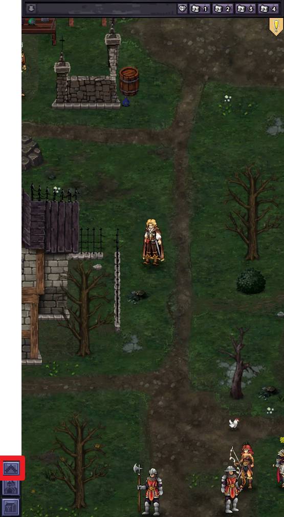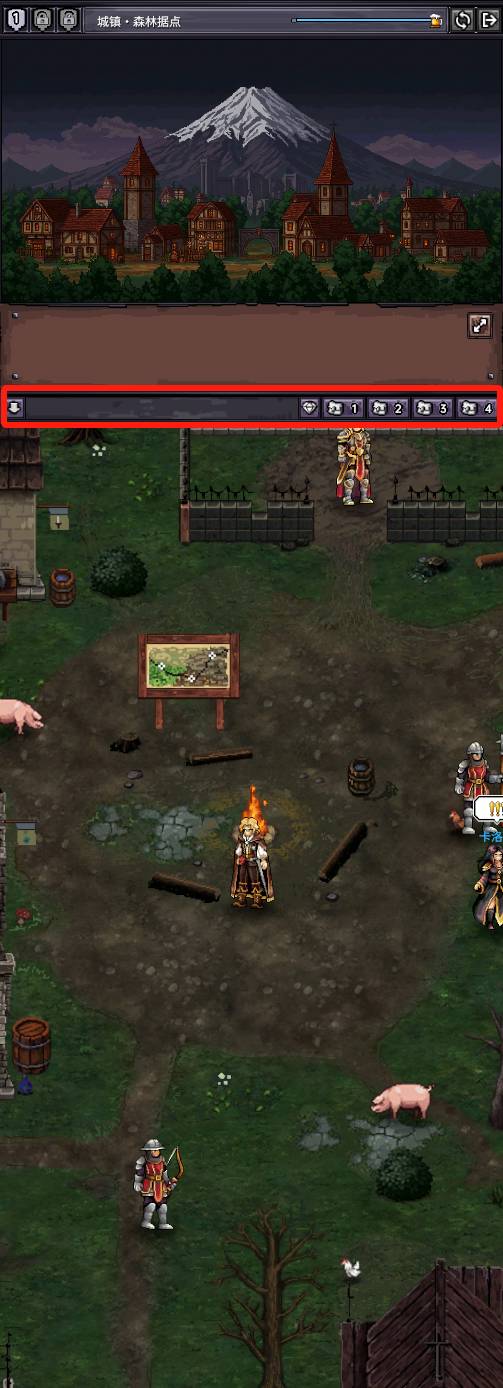 首先观察上方正方形窗口顶部弹窗的用处,最左侧有数字显示的是一个简易的队伍管理槽,玩家可以通过点击数字直接切换1队或2队。