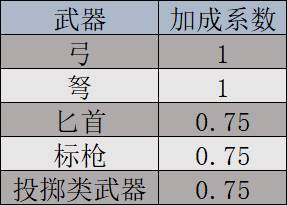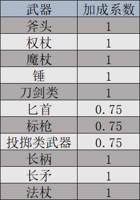 敏捷:提升敏捷可穿戴有属性限制的装备,敏捷还会提升角色本身的防御力和防御穿透,敏捷有着与力量相同的武器加成系数,如下图表格所示;同时这个加成系数与技能的百分比加成和其他装备的百分比伤害加成为叠加关系。