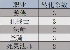 能量:能量根据不同职业的系数加成,按照比例转化为法力值。
