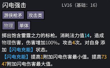 一是武器类技能,这类技能的特点可从技能描述看出,如下图技能闪电强击。