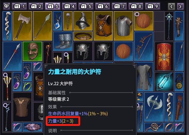 不同类型的装备有独立的词缀库,而大部分词缀都有着等级限制,例如只有7级以上的装备才有概率刷出【意志之】这个后缀。