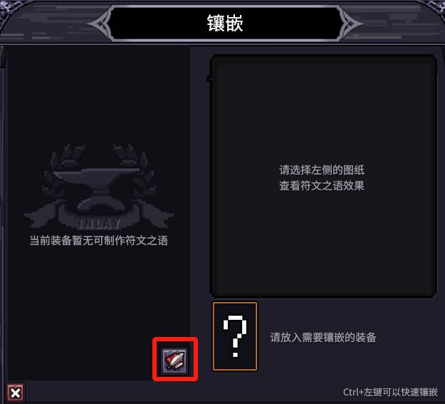 镶嵌页面,左侧点击已经解锁的符纹之语查看配方,通过对应的武器类型与配方即可打造出带有固定效果的武器。