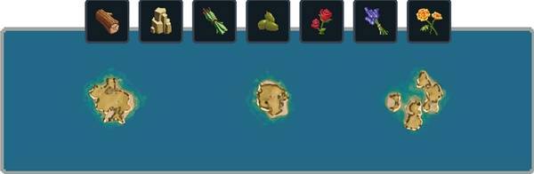 作物资源非常丰富的岛屿类型,橄榄和各种花都能找到,当然更重要的是石灰岩,和硬木类似石灰岩需要“硬化钢镐”才能够开采。
