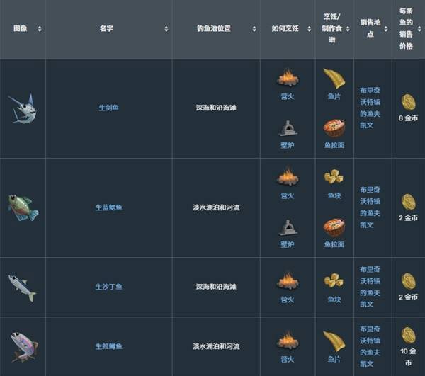 游戏里就鹿肉和鱼肉两种肉类,所以钓鱼肯定是我们肉类的主要来源,而且鱼肉能够做出游戏里效果最好的食物,下面讲讲钓鱼相关的东西