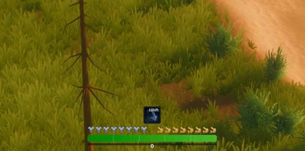 下方的衣服代表防具提供的防御性能,右边的胃代表饱食度,下方的绿条是血量,数字0所在的蓝条是角色等级。