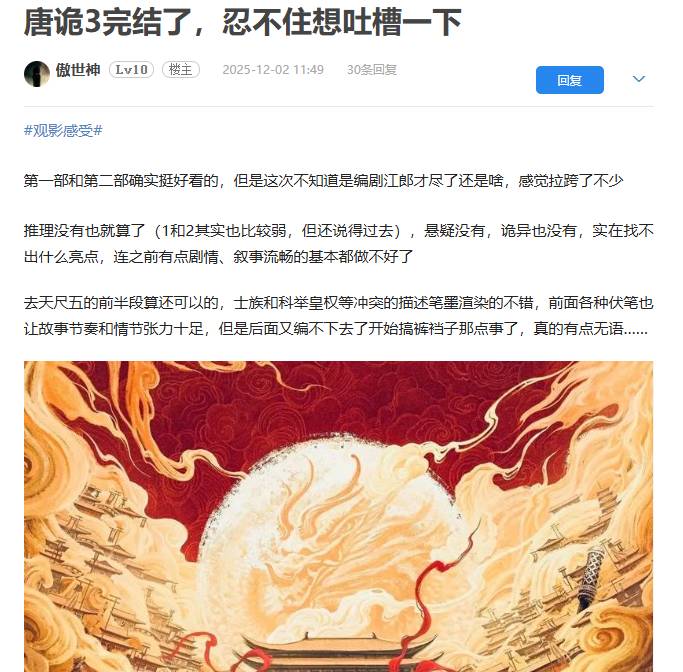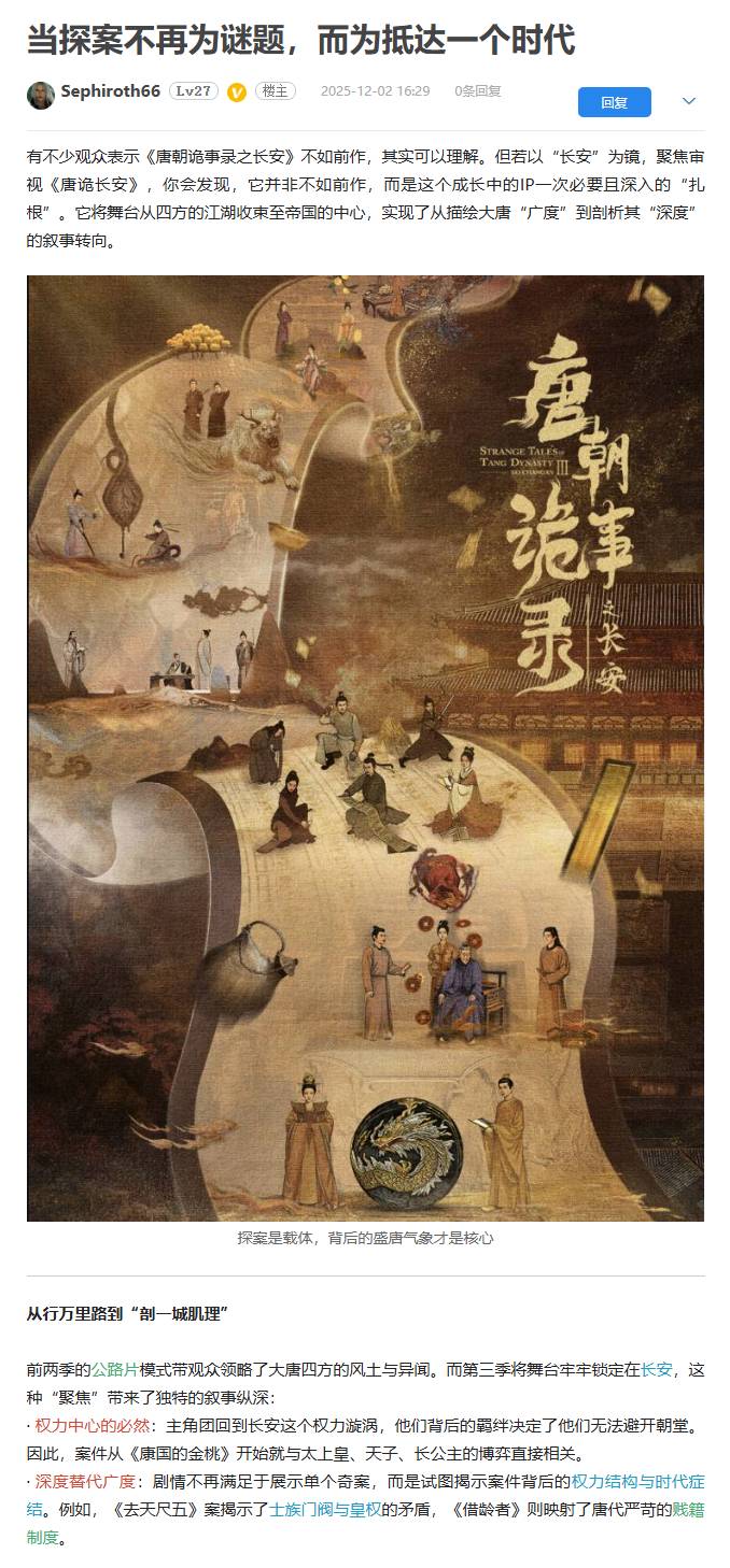 在话题#观影感受#下发帖,聊聊《唐朝诡事录3》或近期其它电视剧看完后的感受,即视为参与活动