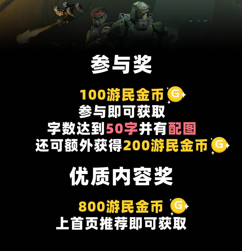 来游民社区发帖分享下你在《绝地潜兵2》中的游戏日常吧!无论是新武器的体验还是游戏中遇到的趣事都欢迎来发!发帖即可获得G娘送出的金币好礼哦!