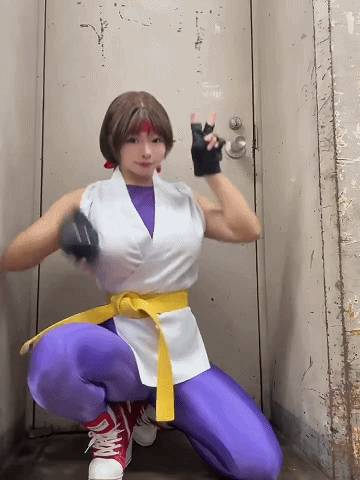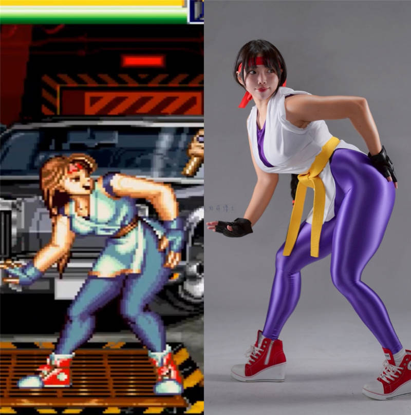 不过,上述这种天降素材的事情总是少见的,而春丽的扮相出现的多了,粉丝们终究会审美疲劳,怎么办呢?作为Coser来说,自然要去发掘其他的扮演对象。“kimimo_purin”决定扮演另外一位来自格斗游戏的女角色,那就是标题里所述的,《拳皇》(还有《龙虎之拳》系列)坂崎百合(Yuri Sakazaki)。想一想很有道理啊!格斗游戏里的角色必定健康壮实,她的蜜大腿正好有用武之地。