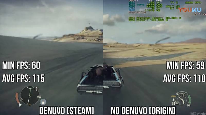 《疯狂的麦克斯》再去除d加密后获得了一定帧数上的提升,并且在室外场景的时候,飙车时候的帧数稳定性也得到了小幅度的加强。