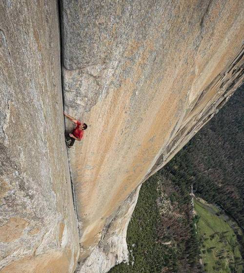 酋长岩,一座高914米,坡度近乎垂直的单体花岗岩,距今已有超过70人试图攀爬上它遇难,而能够徒手无任何保护措施爬上崖顶的,至今也仅有亚历克斯一人。