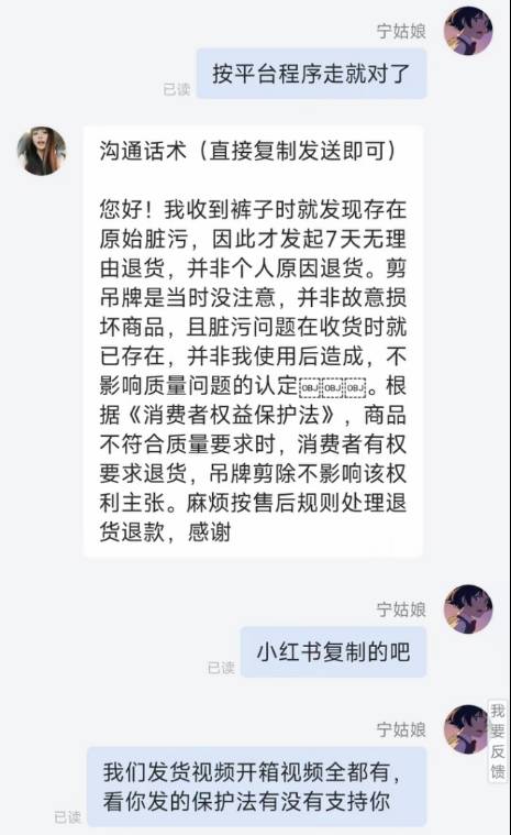 再加上平台的政策优惠:七天无理由退货、退货险、客服偏袒,只要是买家有心去利用这些平台规则,只要不是高风险账号,退货退款基本上就是秒通过(当然高风险了再换个号就行了),每一个衣服店的老板对行业现状看似是接受了,实则是没招了。