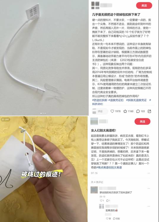 于是在网上开始有人分享各种拆吊牌的办法,有用牙线直接捅下来的,有去专门学习正宗开锁手法的,甚至还有剪掉后用火烧重新连起来的,手法专业到堪比“拆弹专家”。