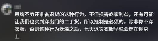 而那些想要好好买衣服的,剪掉吊牌照样穿,更不用担心之后会买到别人退货回来的二手服装,可以说这个做法是完完全全的双赢。