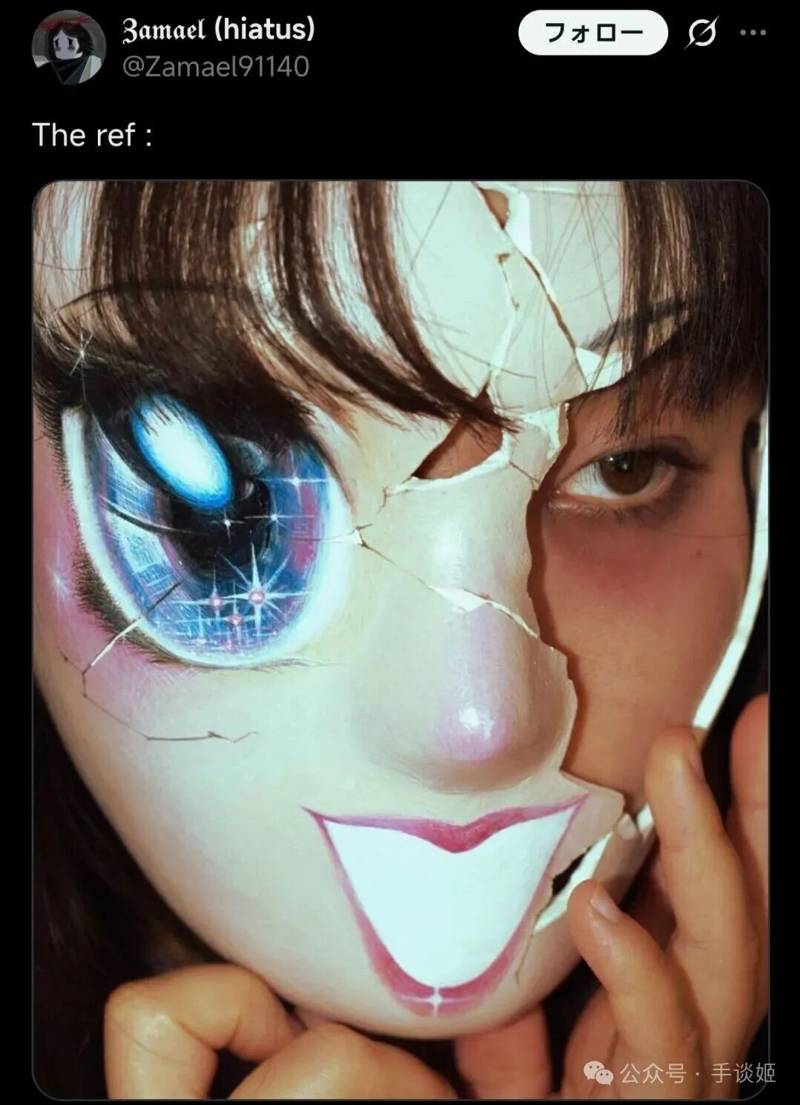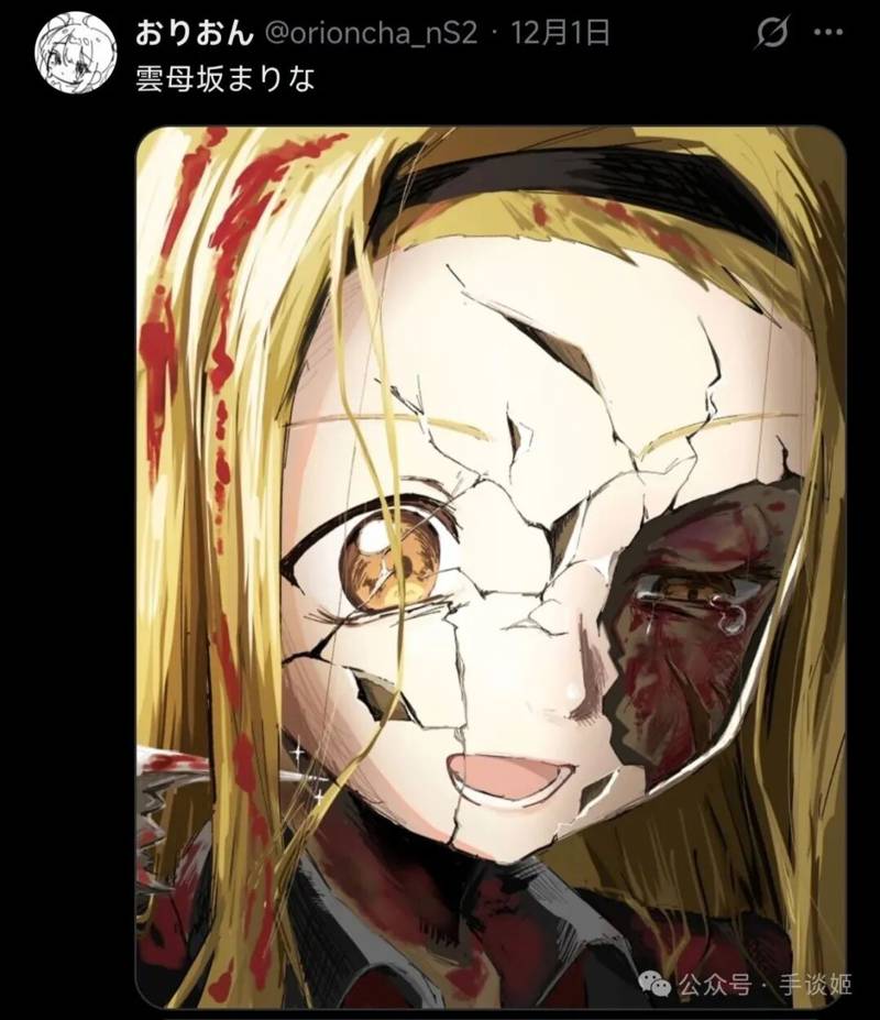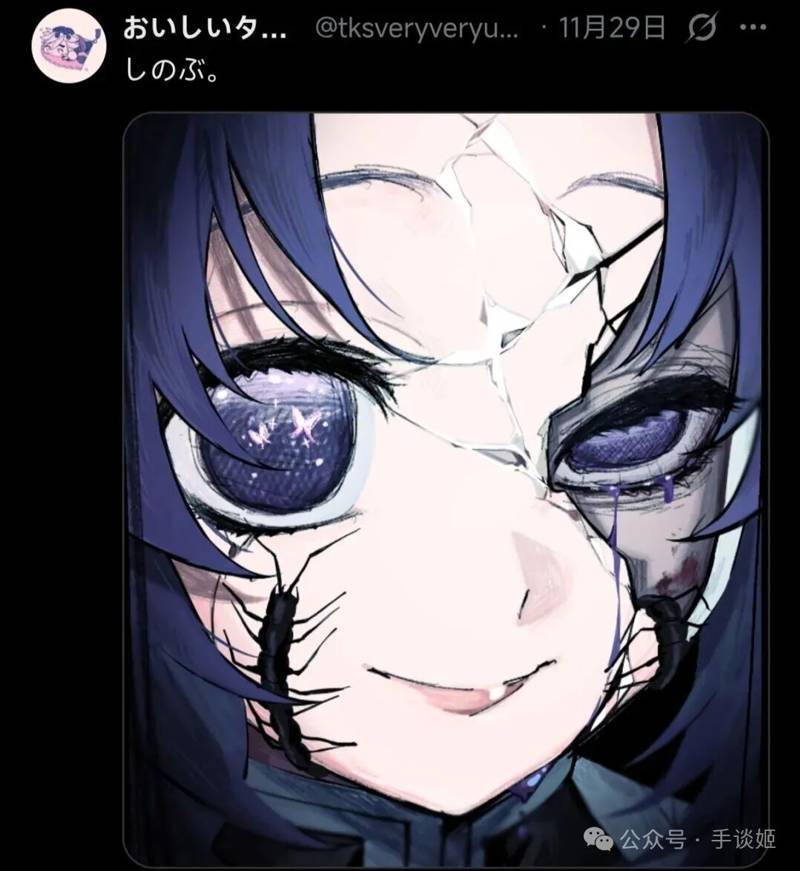 可以看出,本次大家一起画的构图是碎裂的面具。说实话,这让姬稍微有点想起以前网络上非常流行的梗图,有种把痛苦全部隐藏在面具之下的emo感……