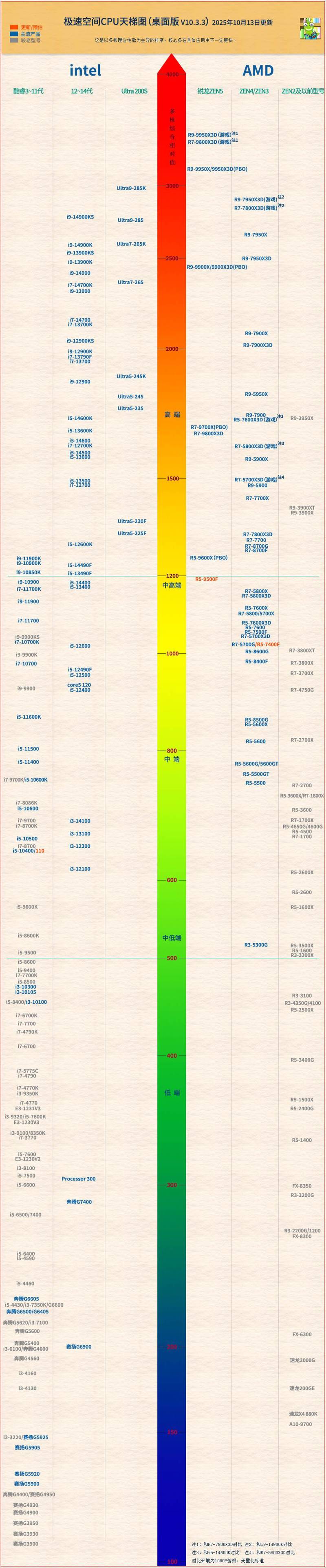 搬运自极速空间 PC小虫,排名侧重生产力跑分,部分CPU会加入游戏性能对比。详见底部图注