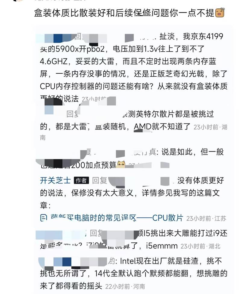 缺点:功耗高。若是搞生产力,146KF建议尽量上水冷,长时间生产不会降频损失性能;若只打游戏,用双塔风冷也没事,只是温度会高、但不会降频损失性能,并且有极小概率存在缩刚风险(我大概出过600多片,暂时没遇到过缩的,对比他那俩大哥好多了),建议自用购入五年质保的盒装