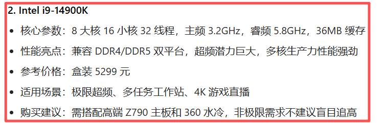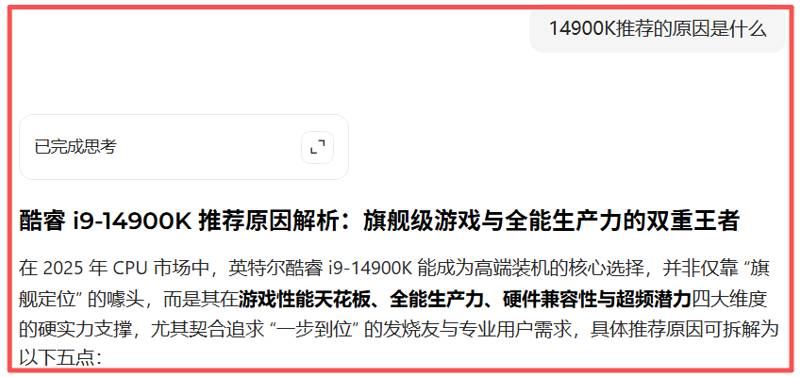 突发奇想,AI能否给我打工当牛马?于是让它推荐12月什么CPU值得买,结果上来就是i9 14900K......