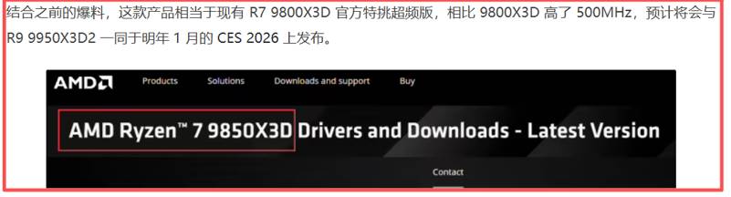 预计明年初会推出9850X3D,据说是特挑9800X3D,追求旗舰游戏CPU的老哥这个月可以先把内存硬盘买了等等新U