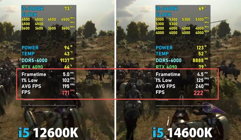 CPU频率高、缓存大的一大优势是网游表现会较好。像CS2、PUBG、瓦洛兰特等网游中,12600KF能获得更强的帧数表现(3A单机游戏里则差距不大):