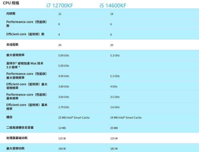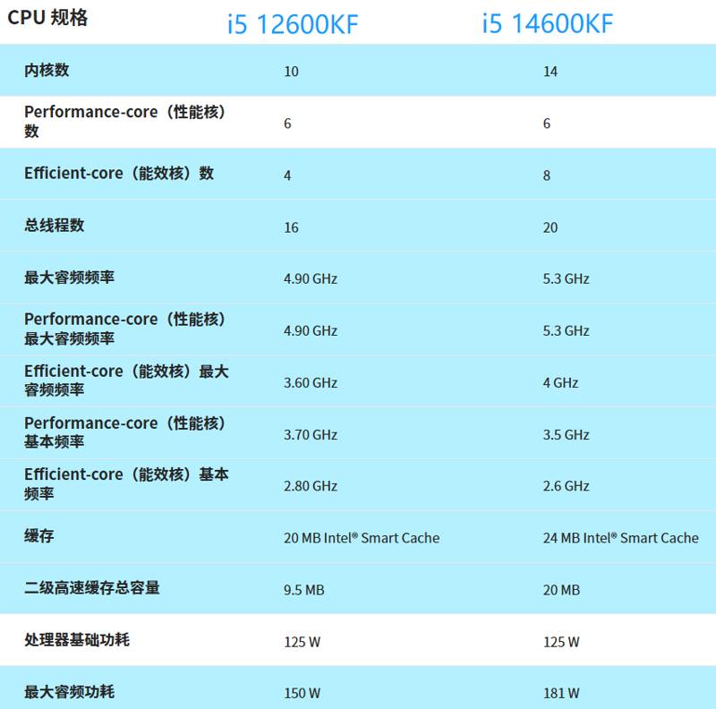 13490F、14490F这些特供版CPU类似,大伙可触类旁通~i5 14600KF14核心20线程(约1270元,建议搭配240W以上供电的B760主板):