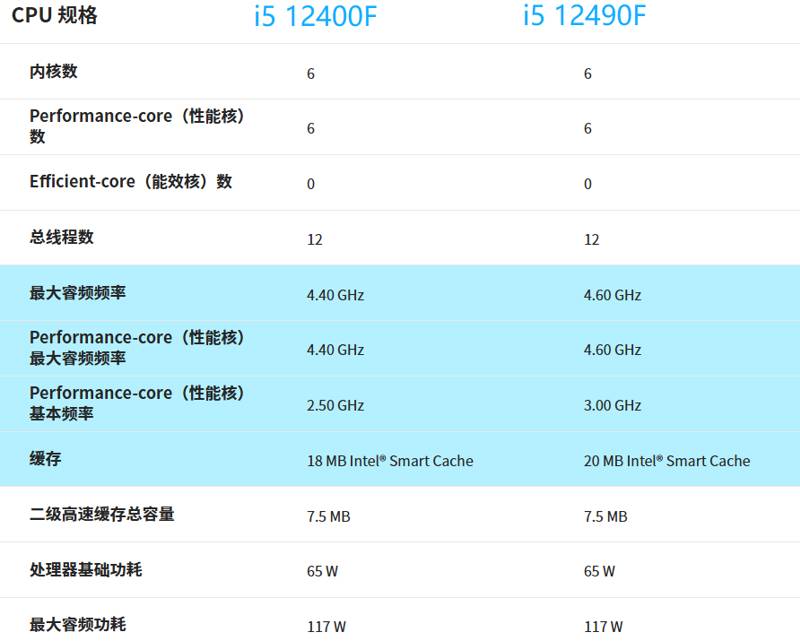 市面上还有i5 12490F,是国内特供版,其频率、缓存都要更高一些: