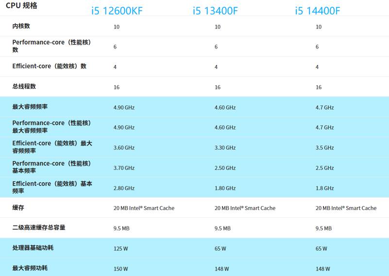 13400F、14400F,这俩都算12600KF的换皮小弟,频率略低: