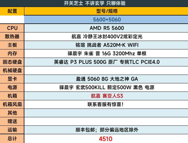 5600可搭配5060、9060XT这类热门独显,组建性价比极高的主流游戏整机!