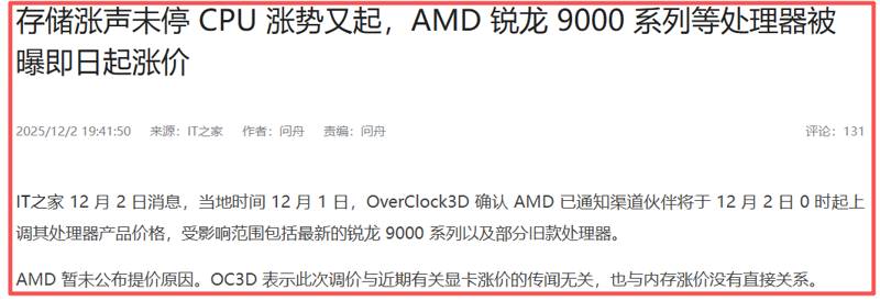 3、据说AMD要对9000系进行涨价,原因不明可能还在想,总之先涨价: