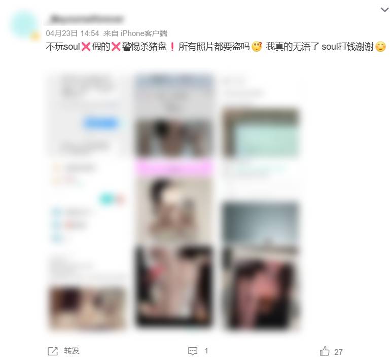 官方又不会对其进行资质审核,最终一个不需要实名露脸、又能快速建立亲密关系的环境,成了软色情、杀猪盘的重灾区。网上随便一搜,关于在 Soul 上被骗钱、被引流到博彩网站的案例也不少。