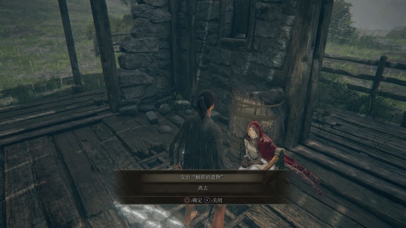 在宁姆格福的风暴山丘之上,有一处破败的小屋,褪色者好奇的向里面望去,发现墙角蜷缩着一位瑟瑟发抖的少女,她带着一顶红色的风帽,盖住了金黄色的短发,询问她发生了什么,她惶恐不安的说道: