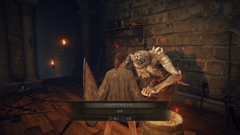 看得出来,罗德莉卡希望铁匠能够指导她调灵,于是褪色者问修古能否照顾她,修古大吃一惊: