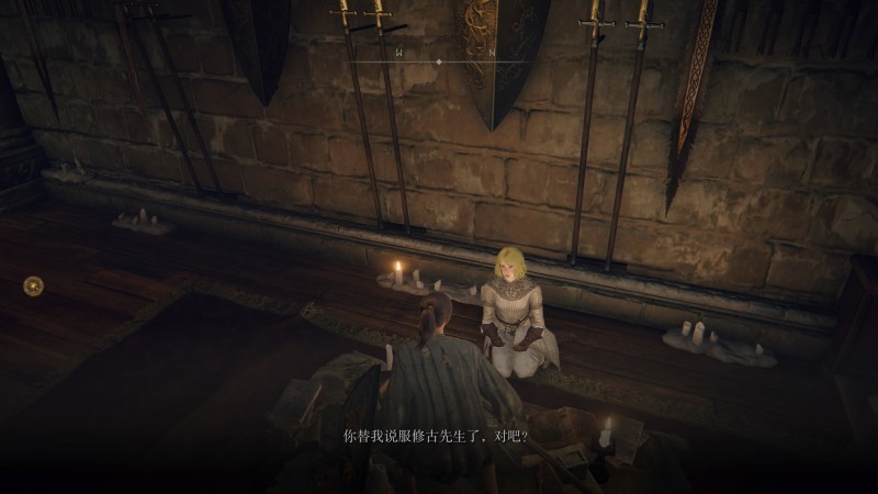 之后褪色者又在宁姆格福探索了一段时间,而少女也不在破屋之中了,再次相遇是在圆桌厅堂的壁炉前:
