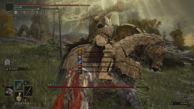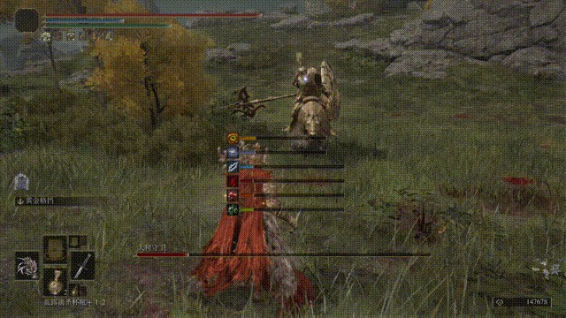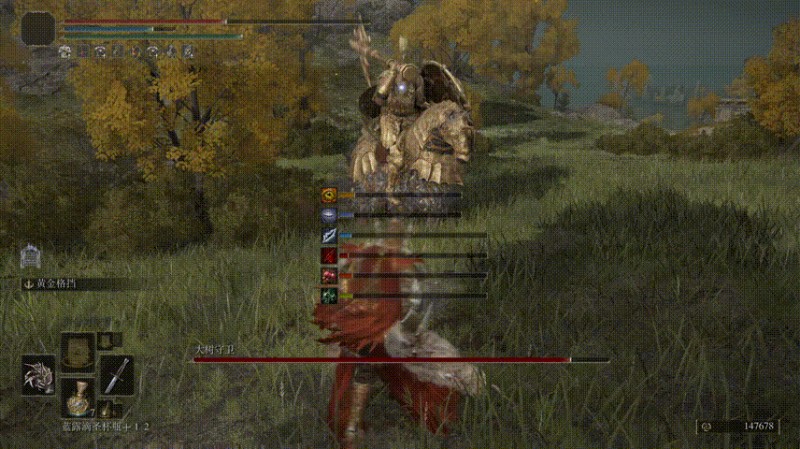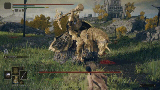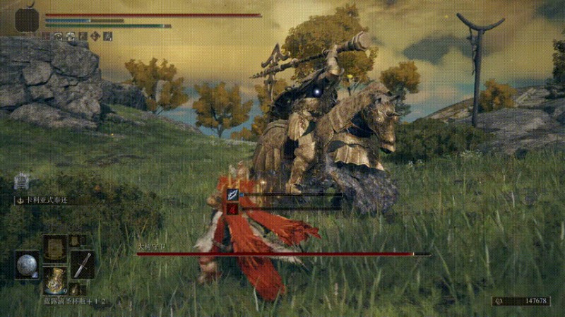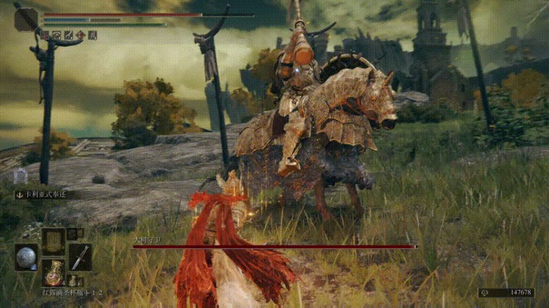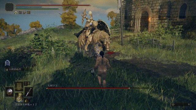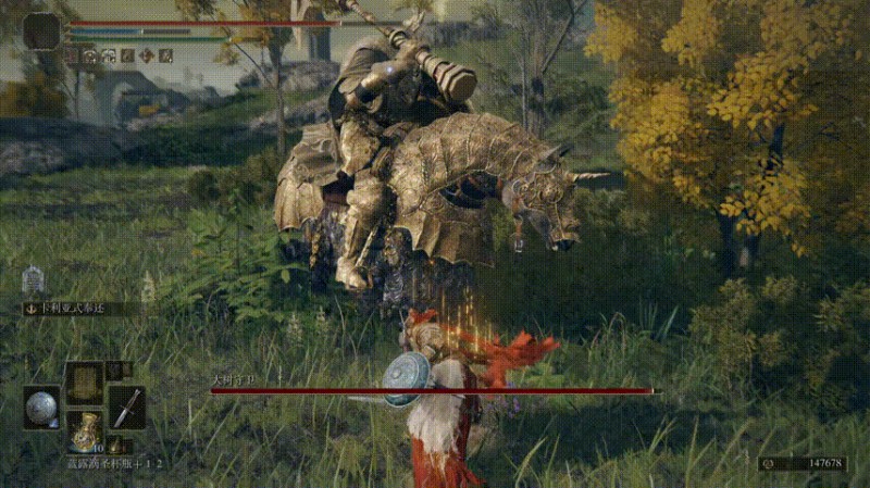 招式除了刺前摇较短以外,其他都大开大合比较好弹反,特别是勒马技能前摇长,容易走位到弹反位置。注意的是如果没用黄金格挡进行弹反,应选择在贴近守卫右脚和马右前腿附近进行弹反。