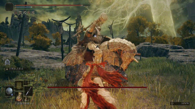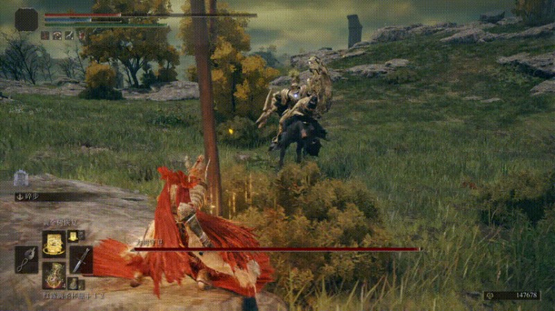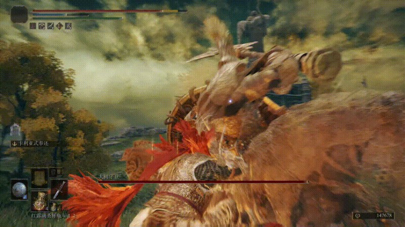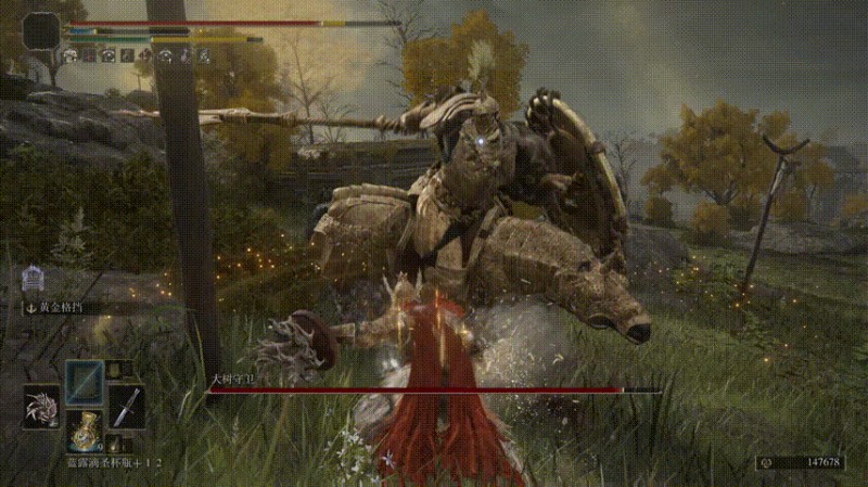 该BOSS为骑行状态,弹反失衡后无法处决。技能以戟的扫、撩、劈、刺攻击为主,配合盾牌的撞、砸。