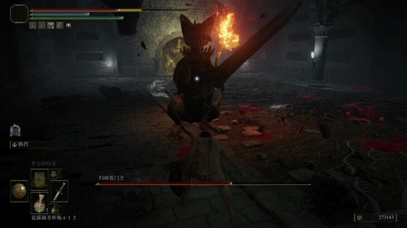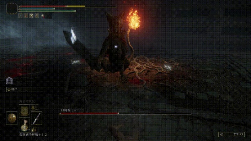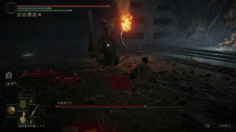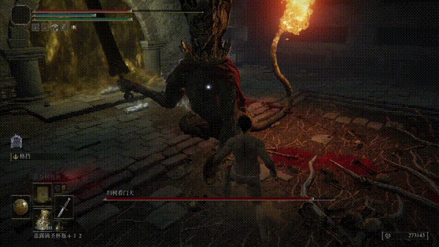 该BOSS印象里招式很简单,也就会跳起来插剑、喷火,这次仔细研究后发现招式还蛮多。近战时如果没有打断让它连招打起来(还有令人无语的无限连劈),快、慢招结合,不熟悉招式很容易中招。