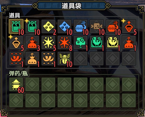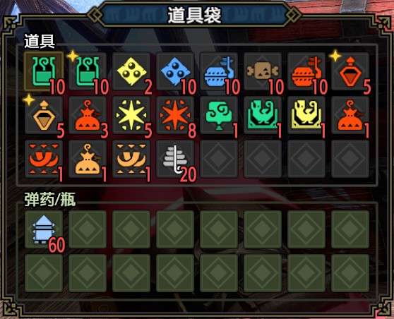 配合调和总计可以携带180发,基本可以确定弹药是不够的,所以回归球回去取吧!当然也可以携带其他子弹,由于武器本身攻击力面板够高,推荐带些通常弹2也不错。