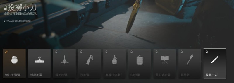 致命装备,以阔剑,破片手雷等杀伤敌方为主的道具。