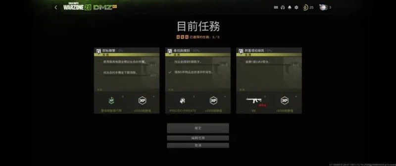 红色:这是你在DMZ模式的主线任务,需要进入战局内完成,可以多次进入战局累计完成。