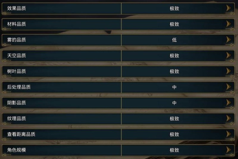 特效方面,“纹理品质”和“查看距离品质”的这俩可以拉高,其他根据自身配置保证可接受的帧数相应拉低。
