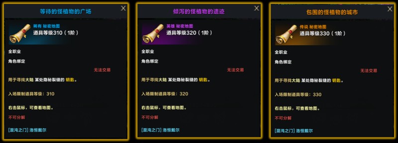 等级越高的秘密地图,使用后进去藏宝区域获取的材料价值更高。