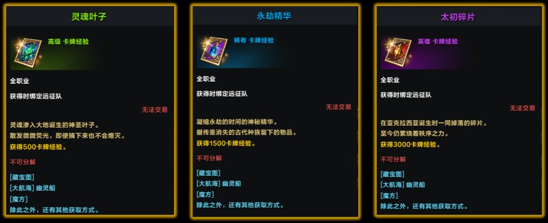以上这些材料除卡牌经验卡片外,均可放在物品交易所进行售卖