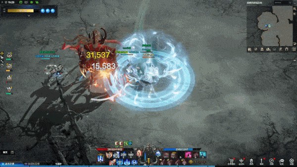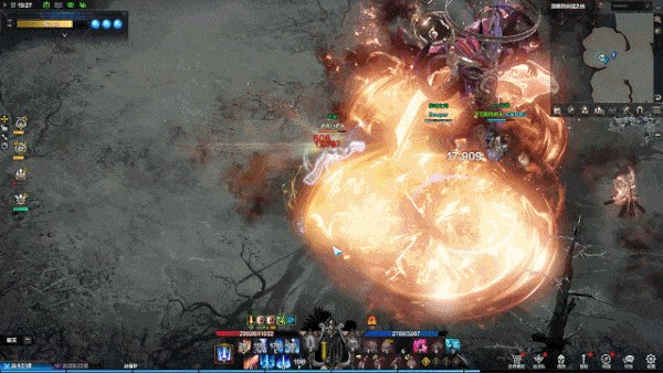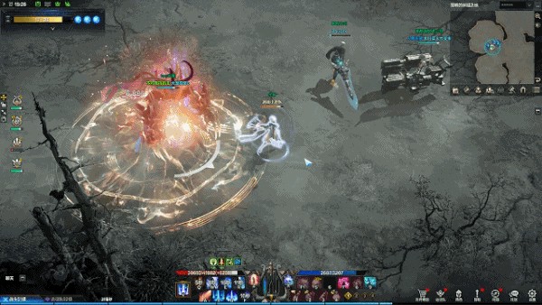 在前面召唤一个巨大的魔法阵,并向目标玩家进行1次或者3次的火光冲击,该技能会跟随目标移动而转动,该技能伤害较高