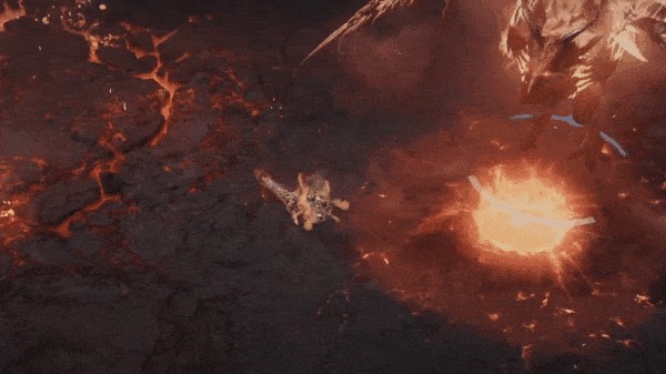 赫尔盖亚进化至P2、3阶段的独有新机制,赫尔盖亚高高跃起,短暂延迟后用爪子猛击地面,被命中的目标附带受击击飞效果,烧伤减益效果X1。