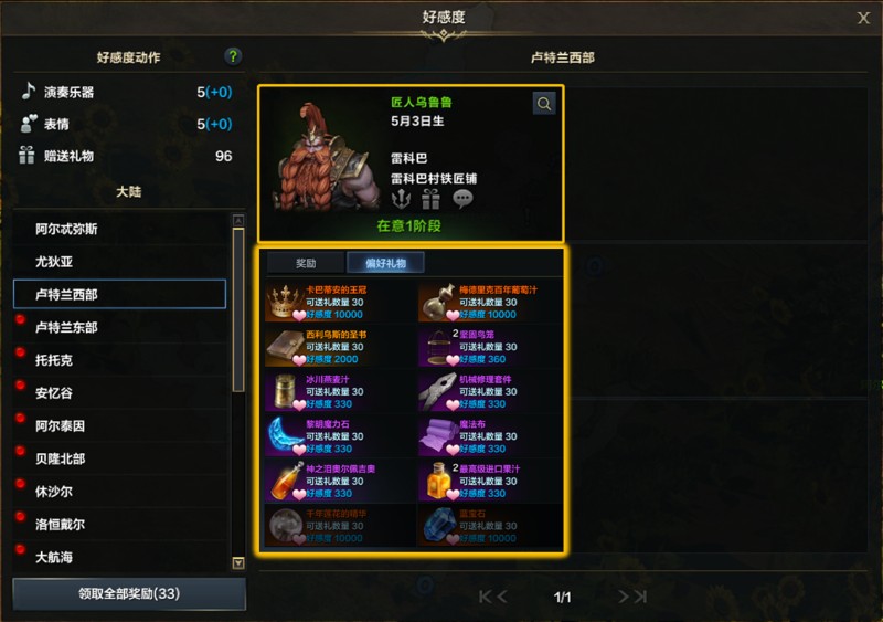 以上大陆百科在对照查找时,可能会由于地图没有缩放导致具体位置看的不是很清楚,这种情况下可以看右上角的小地图来确定具体的位置,好感度任务没有完成是因为体验服好感度材料不够,实际正式服做的时候我们可以慢慢来,大约半年的时间就可以全部弄满了