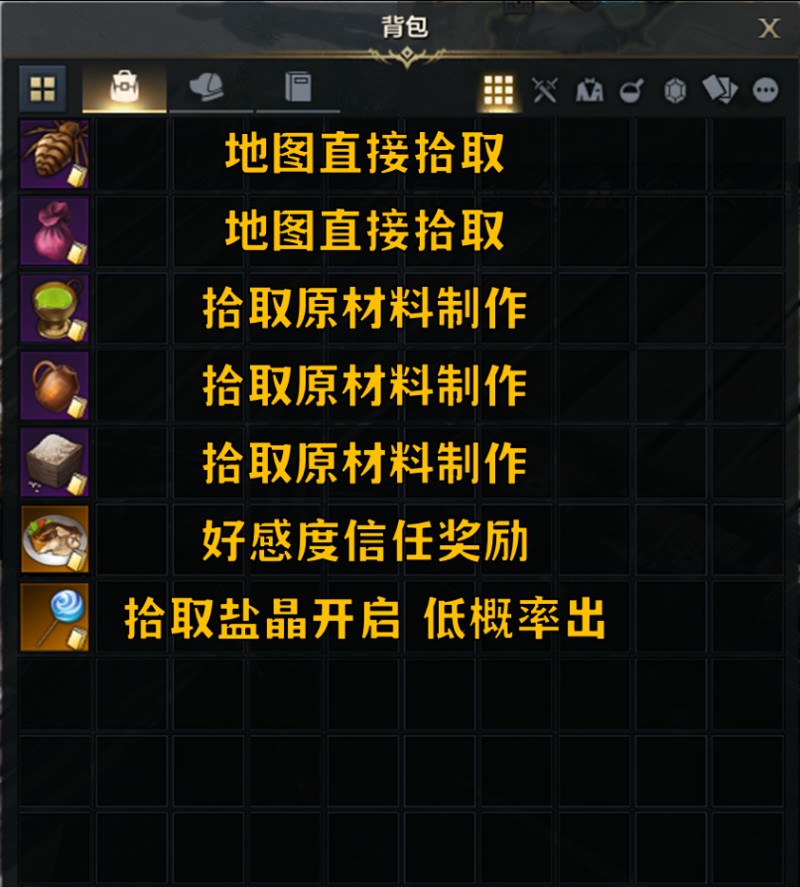 分为直接获取和获取原材料再去制作两种方式。部分特别的料理与NPC好感度挂钩